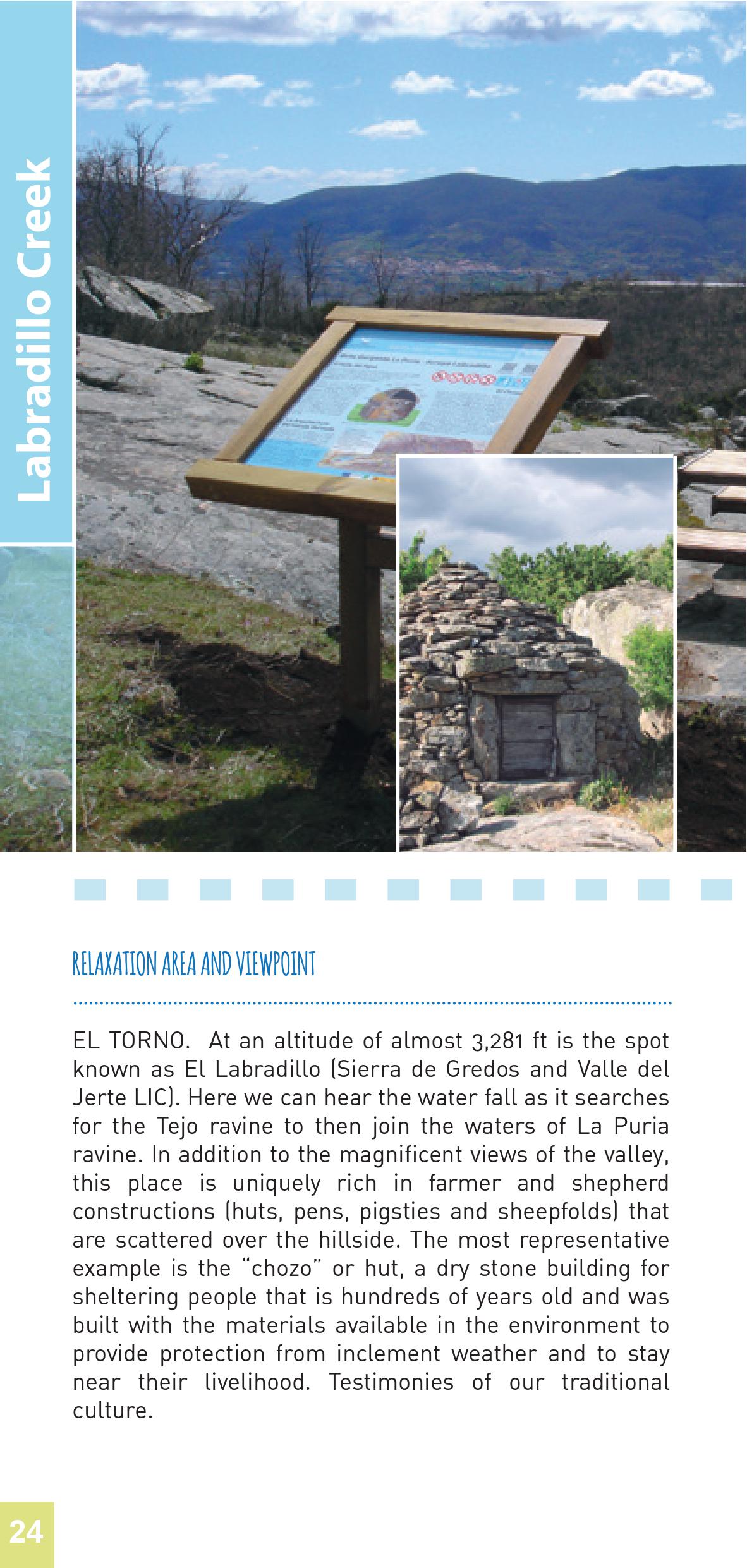 At an altitude of almost 3,281 ft is the spot known as El Labradillo (Sierra de Gredos and Valle del Jerte LIC). Here we can hear the water fall as it searches for the Tejo ravine to then join the waters of La Puria ravine. In addition to the magnificent views of the valley, this place is uniquely rich in farmer and shepherd constructions (huts, pens, pigsties and sheepfolds) that are scattered over the hillside. The most representative example is the “chozo” or hut, a dry stone building for sheltering people that is hundreds of years old and was built with the materials available in the environment to provide protection from inclement weather and to stay near their livelihood. Testimonies of our traditional culture.