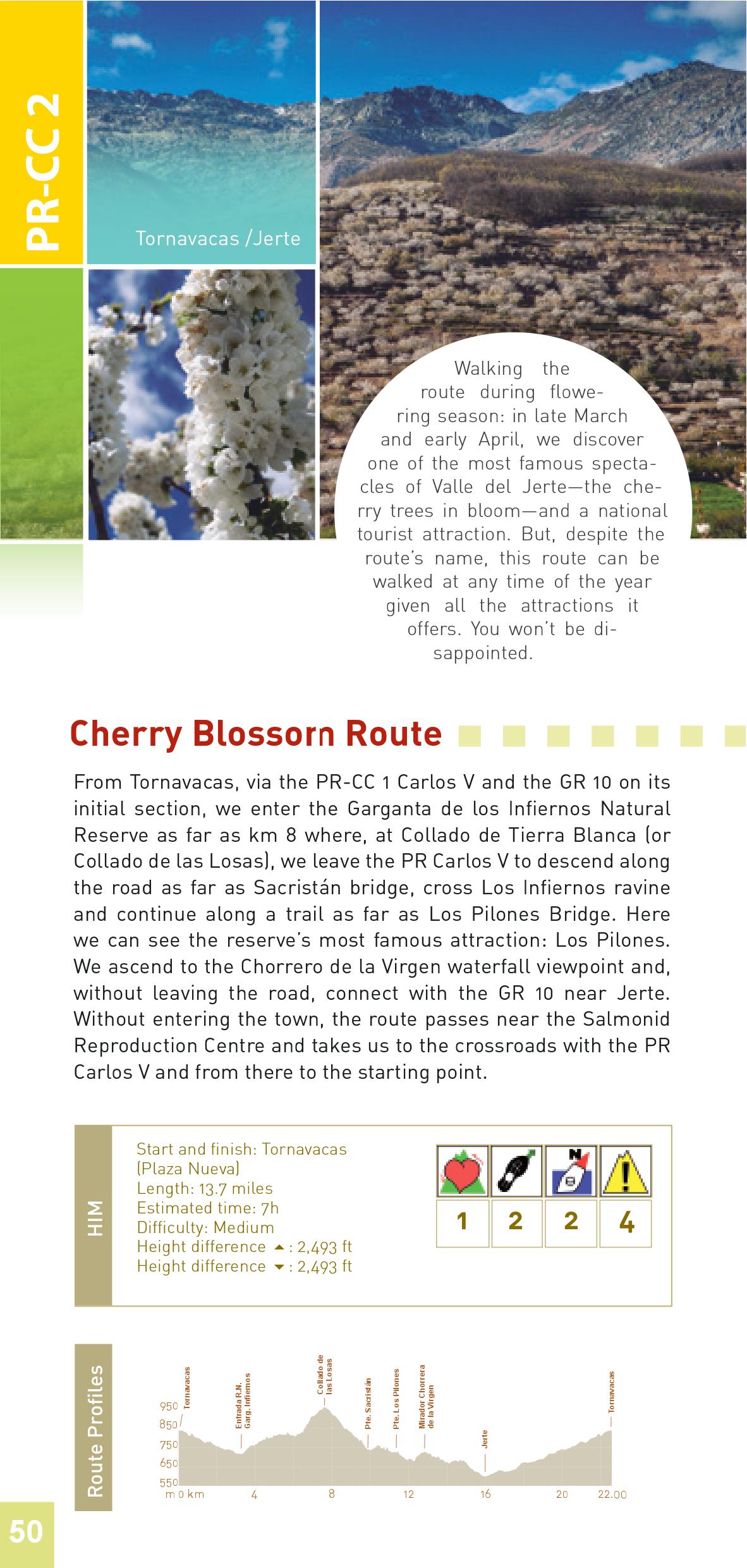 Walking the route during flowering season: in late Marchand early April, we discover one of the most famous spectacles of Valle del Jerte—the cherry trees in bloom—and a national tourist attraction. But, despite theMapa route’s name, this route can be walked at any time of the year given all the attractions it offers. You won’t be disappointed