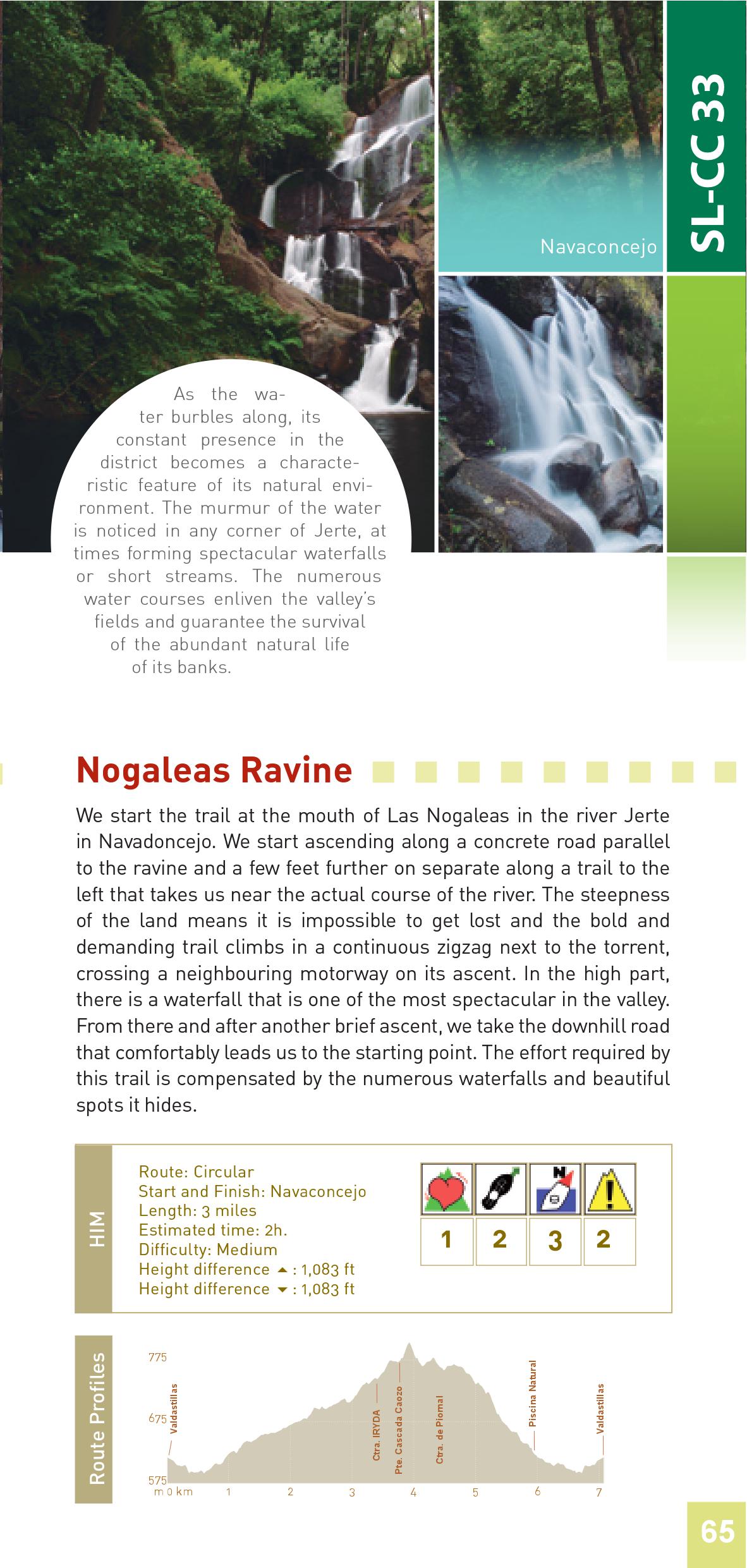 We start the trail at the mouth of Las Nogaleas in the river Jerte in Navadoncejo. We start ascending along a concrete road parallel to the ravine and a few feet further on separate along a trail to the left that takes us near the actual course of the river. The steepness of the land means it is impossible to get lost and the bold and demanding trail climbs in a continuous zigzag next to the torrent, crossing a neighbouring motorway on its ascent. In the high part, there is a waterfall that is one of the most spectacular in the valley. From there and after another brief ascent, we take the downhill road that comfortably leads us to the starting point. The effort required by this trail is compensated by the numerous waterfalls and beautiful spots it hides.