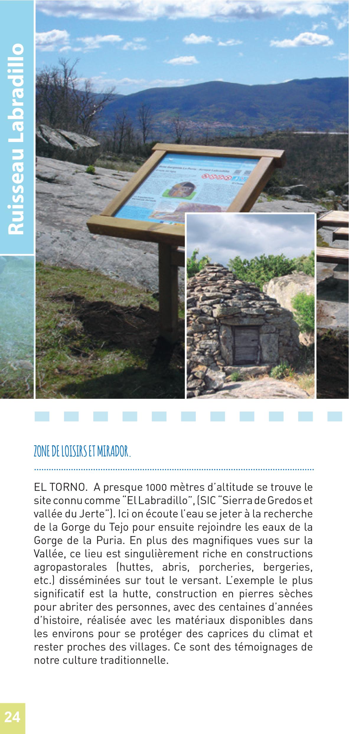 A presque 1000 mètres d’altitude se trouve le site connu comme “El Labradillo”, (SIC “Sierra de Gredos et vallée du Jerte”). Ici on écoute l’eau se jeter à la recherche de la Gorge du Tejo pour ensuite rejoindre les eaux de la Gorge de la Puria. En plus des magnifiques vues sur la Vallée, ce lieu est singulièrement riche en constructions agropastorales (huttes, abris, porcheries, bergeries, etc.) disséminées sur tout le versant. L’exemple le plus significatif est la hutte, construction en pierres sèches pour abriter des personnes, avec des centaines d’années d’histoire, réalisée avec les matériaux disponibles dans les environs pour se protéger des caprices du climat et rester proches des villages. Ce sont des témoignages de notre culture traditionnelle.