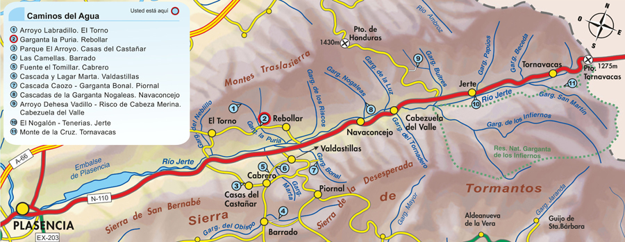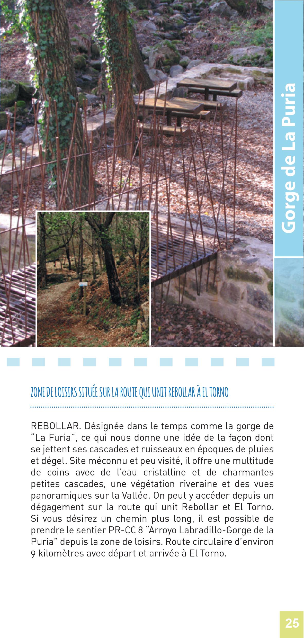 Désignée dans le temps comme la gorge de “La Furia”, ce qui nous donne une idée de la façon dont se jettent ses cascades et ruisseaux en époques de pluies et dégel. Site méconnu et peu visité, il offre une multitude de coins avec de l’eau cristalline et de charmantes petites cascades, une végétation riveraine et des vues panoramiques sur la Vallée. On peut y accéder depuis un dégagement sur la route qui unit Rebollar et El Torno. Si vous désirez un chemin plus long, il est possible de prendre le sentier PR-CC 8 “Arroyo Labradillo-Gorge de la Puria” depuis la zone de loisirs. Route circulaire d’environ 9 kilomètres avec départ et arrivée à El Torno.