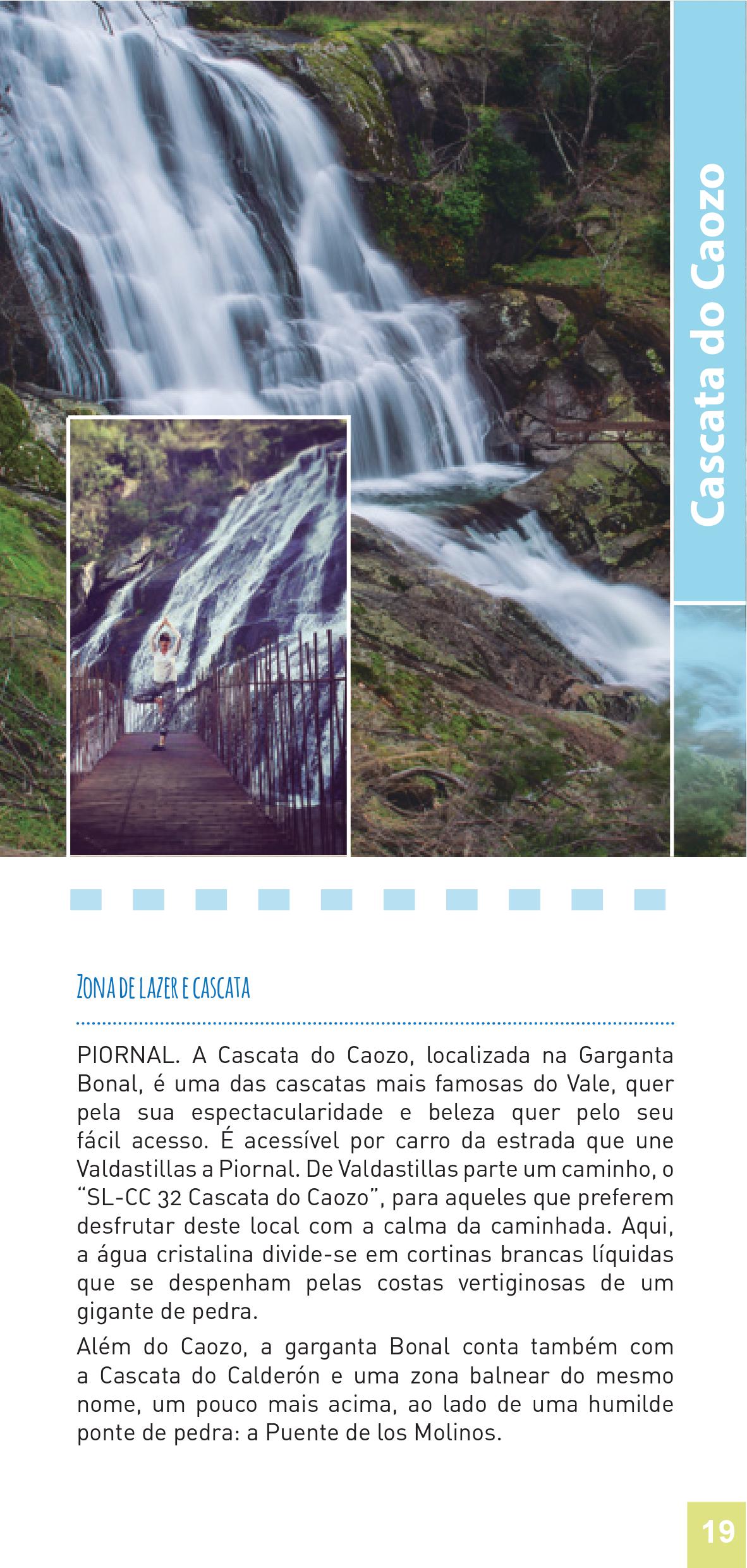 A Cascata do Caozo, localizada na Garganta Bonal, é uma das cascatas mais famosas do Vale, quer pela sua espectacularidade e beleza quer pelo seu fácil acesso. É acessível por carro da estrada que une Valdastillas a Piornal. De Valdastillas parte um caminho, o “SL-CC 32 Cascata do Caozo”, para aqueles que preferem desfrutar deste local com a calma da caminhada. Aqui, a água cristalina divide-se em cortinas brancas líquidas que se despenham pelas costas vertiginosas de um gigante de pedra. Além do Caozo, a garganta Bonal conta também com a Cascata do Calderón e uma zona balnear do mesmo nome, um pouco mais acima, ao lado de uma humilde ponte de pedra: a Puente de los Molinos.