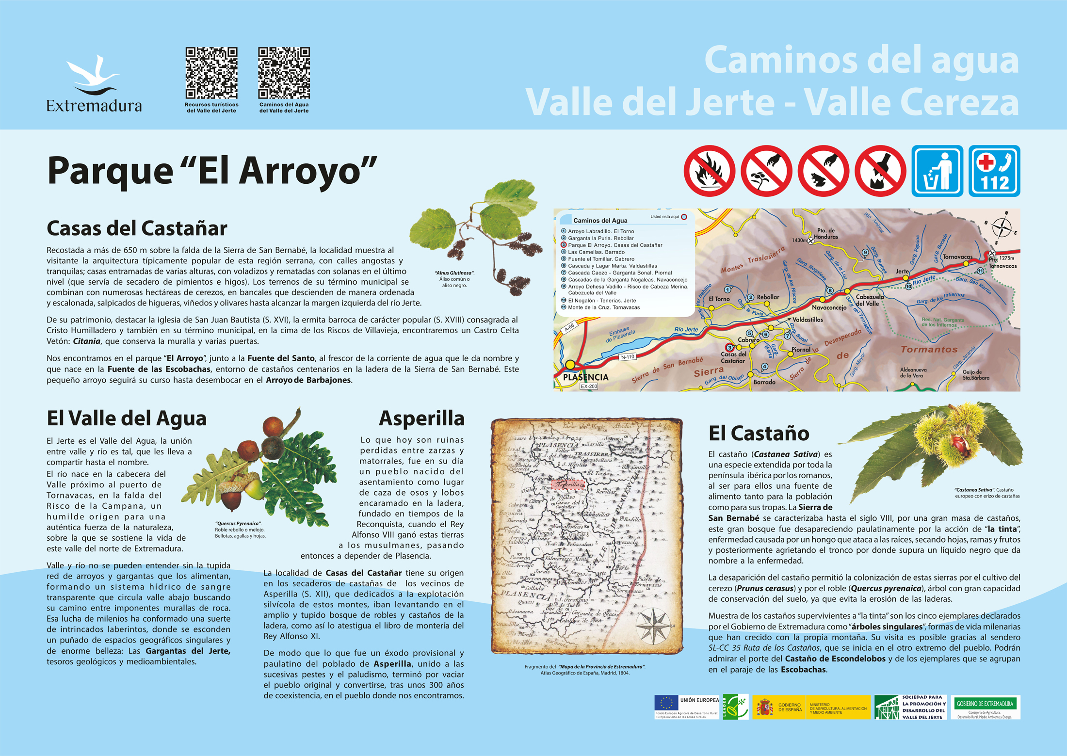 Este parque está localizado ao lado da Fonte del Santo, a frescura da água corrente que lhe dá o nome e que nasce na Fonte de las Escobachas, ambiente de castanheiros centenários na encosta da Serra de San Bernabé. A localidade tem a sua origem nos secadores de castanhas dos vizinhos de Asperilla (dedicados à exploração silvícola destes montes) e nos assentamentos para a caça de ursos e lobos, de acordo com o livro de caça do Rei Afonso XI. O centro histórico apresenta a arquitectura popular serrana, com ruas estreitas e tranquilas; casas de estruturas de diversas alturas, com alpendres e rematadas com varandas no último andar.
