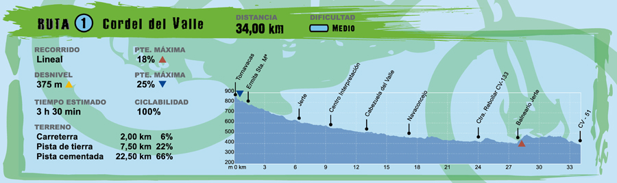 O roteiro percorre o Vale servindo como eixo de ligação entre as outras rotas de Centro BTT. Iniciaremos o roteiro junto à Fonte Santa Ana na parte alta de Tornavacas. Partilhando o traçado com o GR 10, continuaremos até Cabezuela del Valle, passando pela localidade de Jerte e pela entrada da RN Garganta de los Infiernos. Em Cabezuela, abandonaremos o GR 10 e continuaremos pelo GR 110, chegando assim a Navaconcejo. Iremos avançar paralelos ao rio e por áreas de Vega, atravessando a estrada de Rebollar, onde, agora, pelo Cordel, e paralelos à N-110, vamos continuar a nossa descida. Iremos contornar Balneario e após um declive, encontramos uma via que irá continuar até um desvio por um caminho à nossa esquerda, que nos irá levar até à ponte de El Torno, fim do nosso percurso ao longo do Rio Jerte.