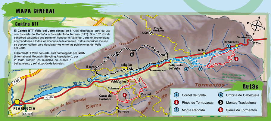 O roteiro parte do Parque El Nogalón, em Jerte, perto da piscina natural homónima. Atravessando o Rio Jerte, pelo caminho de Las Vegas (R-1) chegaremos ao Centro de Interpretação da Reserva Natural Garganta de los Infiernos. Daqui subimos pela via até ao outeiro das Losas, com a opção a meio da subida, de nos desviarmos cerca de 2 km. pelo R-4 para visitar Los Pilones, um dos lugares mais famosos de todo o Vale. Voltando à via e chegados ao outeiro, tomamos o caminho à esquerda, iniciando uma descida técnica pelo PR-CC 1 (R-2), um belo caminho entre castanheiros. No km. 10 saímos do R-2 à direita e continuamos a descer por uma via florestal para chegar ao cordel do Vale (R-1) e voltar a Jerte.