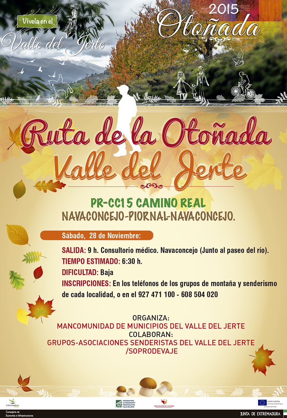 El turismo activo llega de la mano de la RUTA SENDERITA «Otoñada Valle del Jerte» que partirá el sábado 28 desde Navaconcejo y cuyo trazado coincide con la PR-CC15 Camino Real-Navaconcejo-Piornal-Navaconcejo.