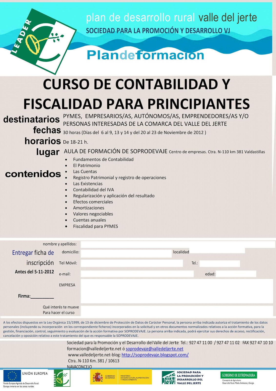 Os dejamos la información sobre el curso ofrecido por SOPRODEVAJE de Contabilidad