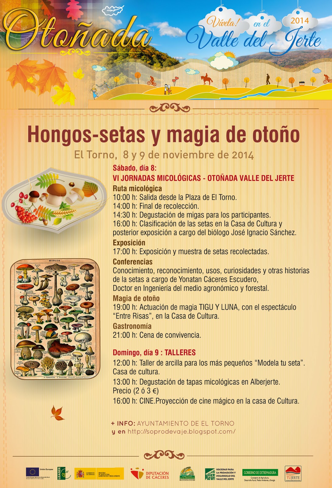 «Hongos setas y magia de otoño» forma parte de los actos de la Otoñada 2014 en el Valle del Jerte. Os dejamos el programa y os invitamos a participar y disfrutar de él.