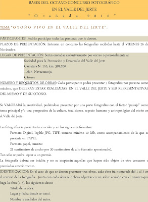 Para los aficionados al otoño, a la fotografía y a los paisajes únicos os dejo las bases del OCTAVO CONCURSO DE FOTOGRAFÍA OTOÑADA 2010.