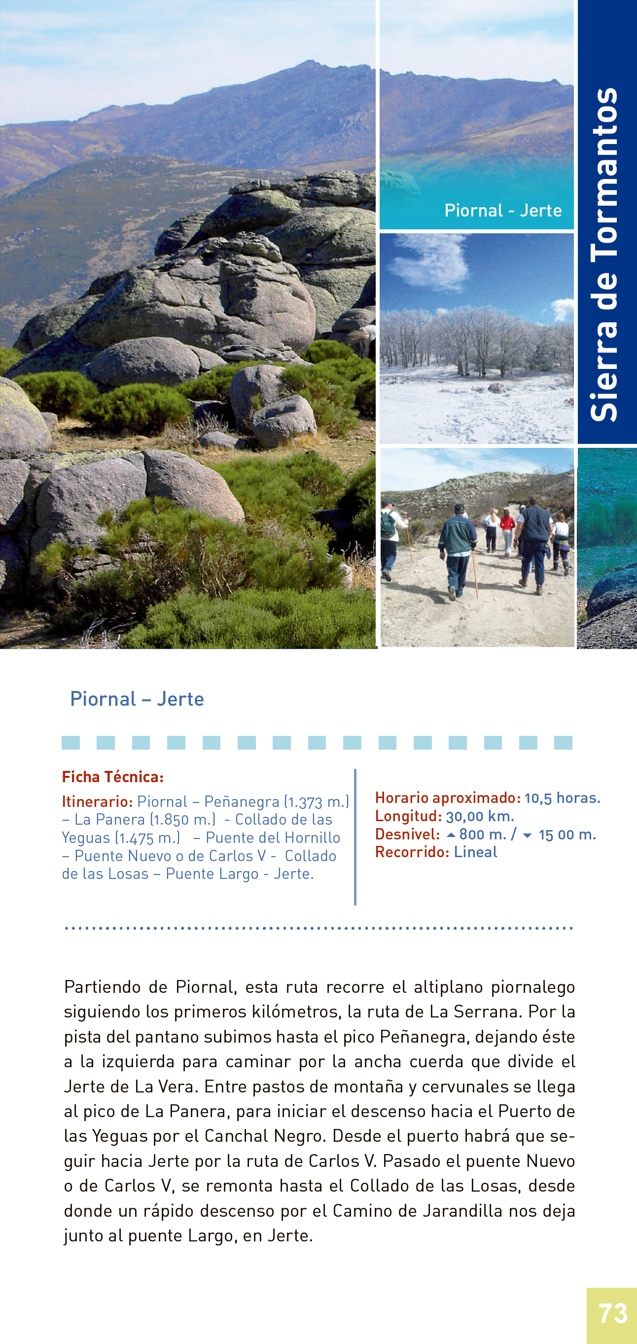de las Losas – Puente Largo - Jerte. Horario aproximado: 10,5 horas. Longitud: 30,00 km. Desnivel : 800 m. Desnivel : 1500 m.