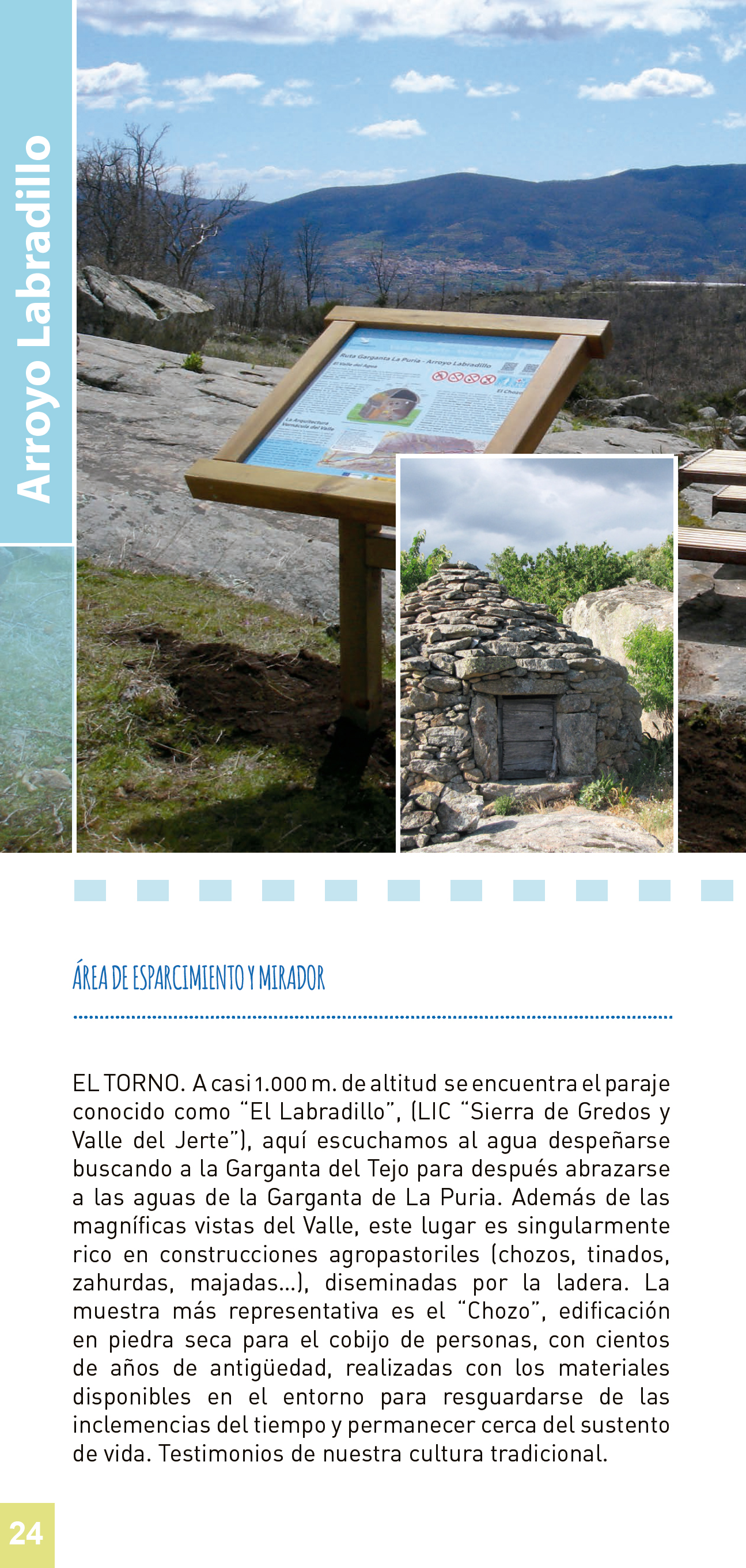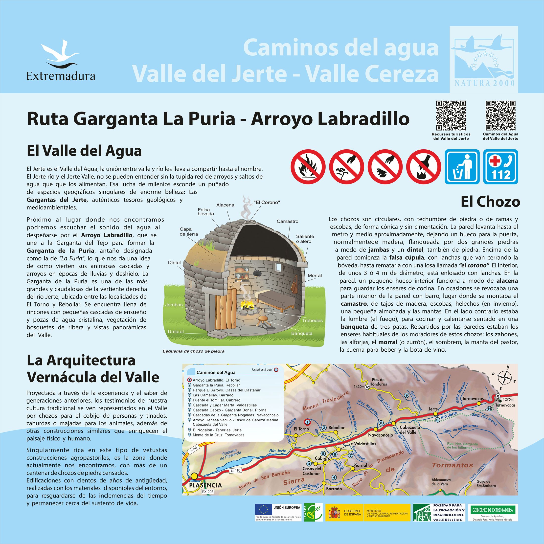 Proyectada a través de la experiencia y el saber de generaciones anteriores, los testimonios de nuestra cultura tradicional se ven representados en el Valle por chozos para el cobijo de personas y tinados, zahurdas o majadas para los animales, además de otras construcciones similares que enriquecen el paisaje físico y humano. Singularmente rica en este tipo de vetustas construcciones agropastoriles, es la zona donde actualmente nos encontramos, con más de un centenar de chozos de piedra censados. Edificaciones con cientos de años de antigüedad, realizadas con los materiales disponibles del entorno, para resguardarse de las inclemencias del tiempo y permanecer cerca del sustento de vida.
