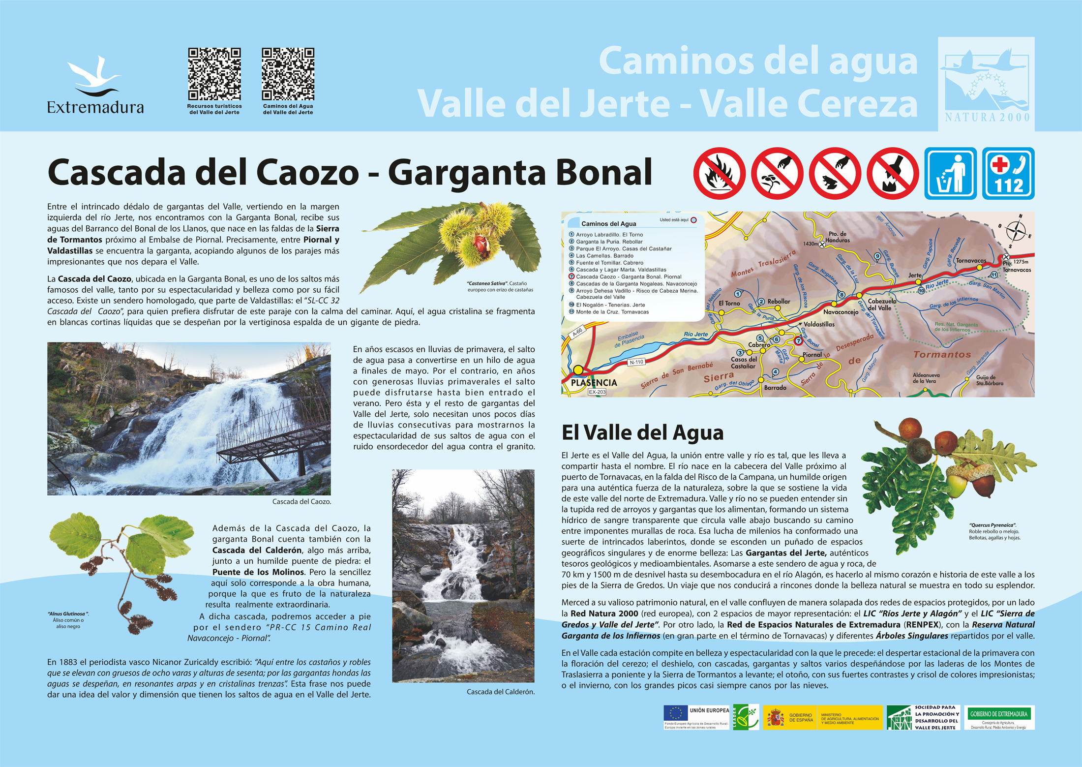 En 1883 el periodista vasco Nicanor Zuricaldy escribió: "Aquí entre los castaños y robles que se elevan con gruesos de ocho varas y alturas de sesenta; por las gargantas hondas las aguas se despeñan, en resonantes arpas y en cristalinas trenzas". Esta frase nos puede dar una idea del valor y dimensión que tienen los saltos de agua en el Valle del Jerte.