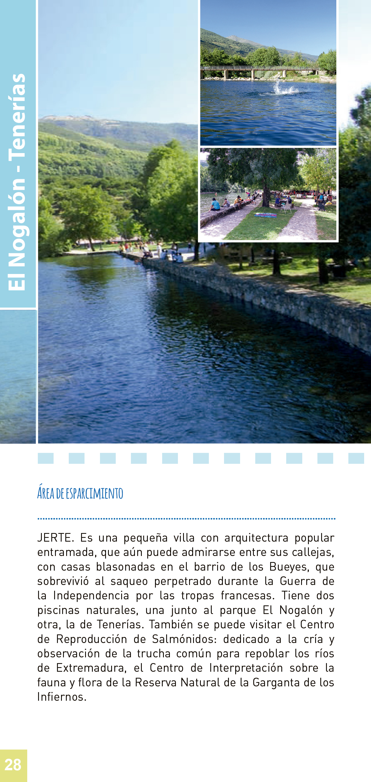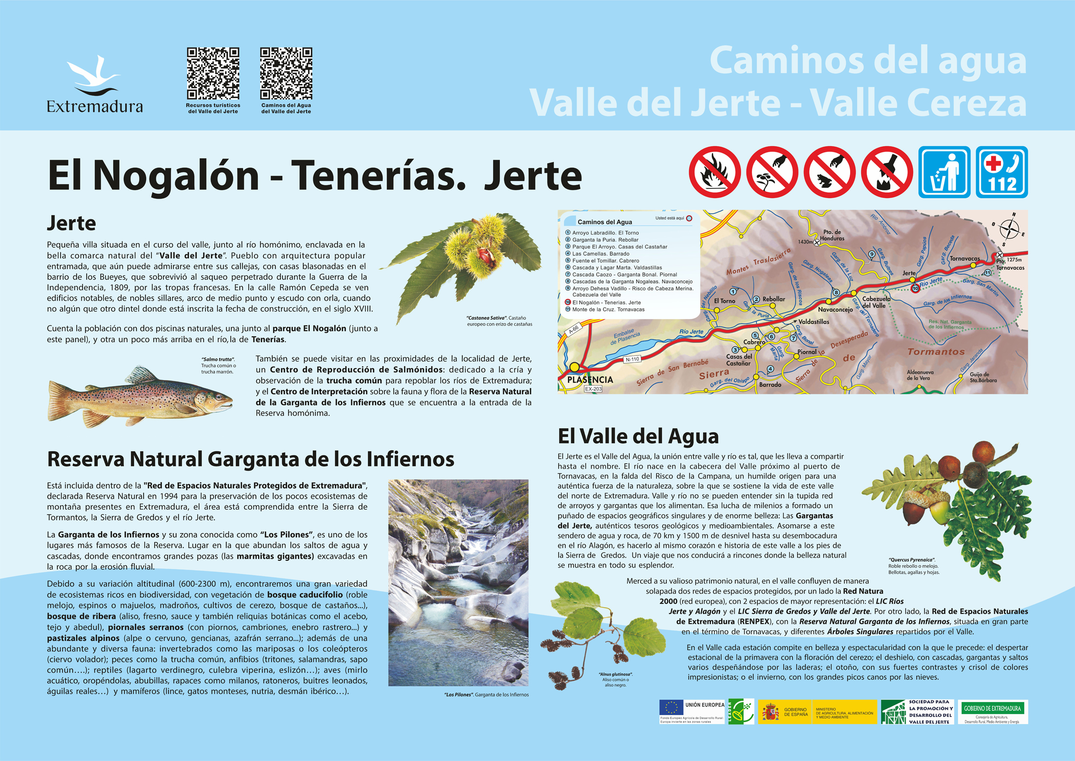 Cuenta la población con dos piscinas naturales, una junto al parque El Nogalón (junto a este panel), y otra un poco más arriba en el río, la de Tenerías.