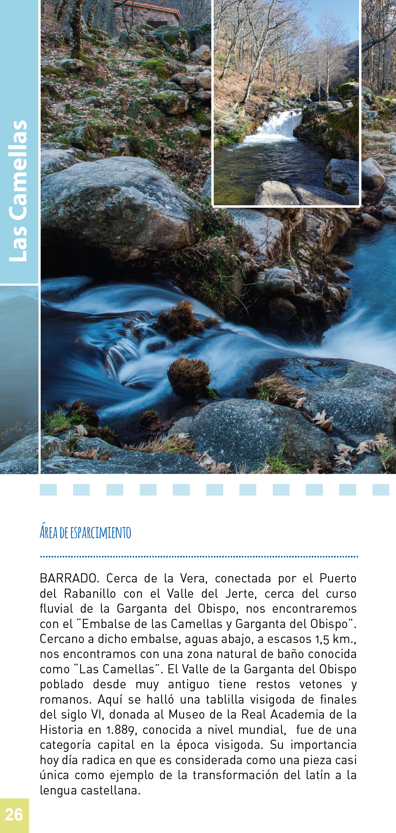Cercano a dicho embalse, aguas abajo a escasos 1,5 km, nos encontramos con una zona natural de baños con numerosos charcos de distinta profundidad, conocida también como Las Camellas.